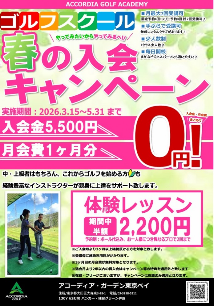 【3/15~5/31】春のスクール新規入会キャンペーン開催のご案内